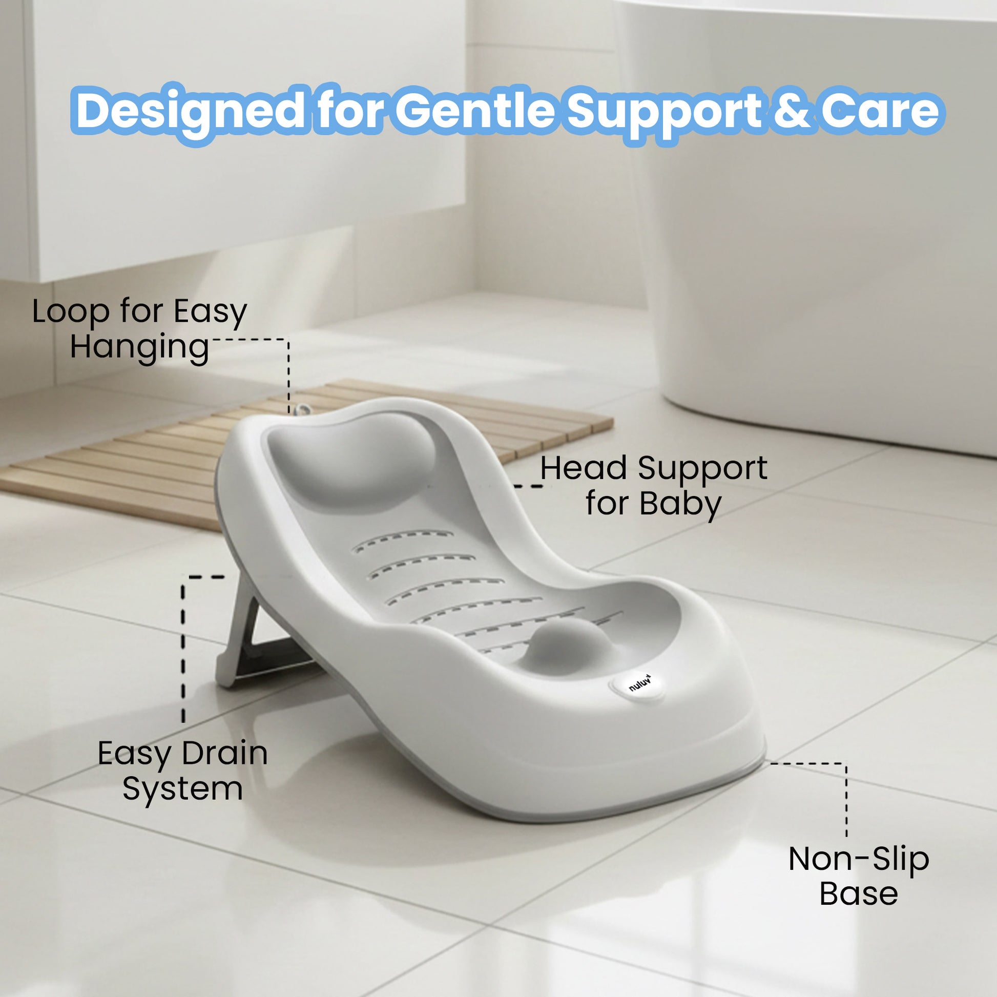Make your baby’s bath time safer and more comfortable with the Nuluv Cushioned Baby Bath Seat, specially designed for newborns and infants 0+ months. Built with a soft cushioned surface, this baby bather provides excellent head and back support, keeping your baby in a secure and gentle position throughout the bath.The non-slip base ensures stability, while the easy-drain design allows water to pass through smoothly for quick drying and better hygiene. Made from safe, sturdy, baby-friendly materials, this ergonomic bath seat brings comfort to babies and convenience to parents.Lightweight, practical, and easy to hang for storage, it’s the perfect bathing companion for everyday use and a great gifting option for new moms and dads.