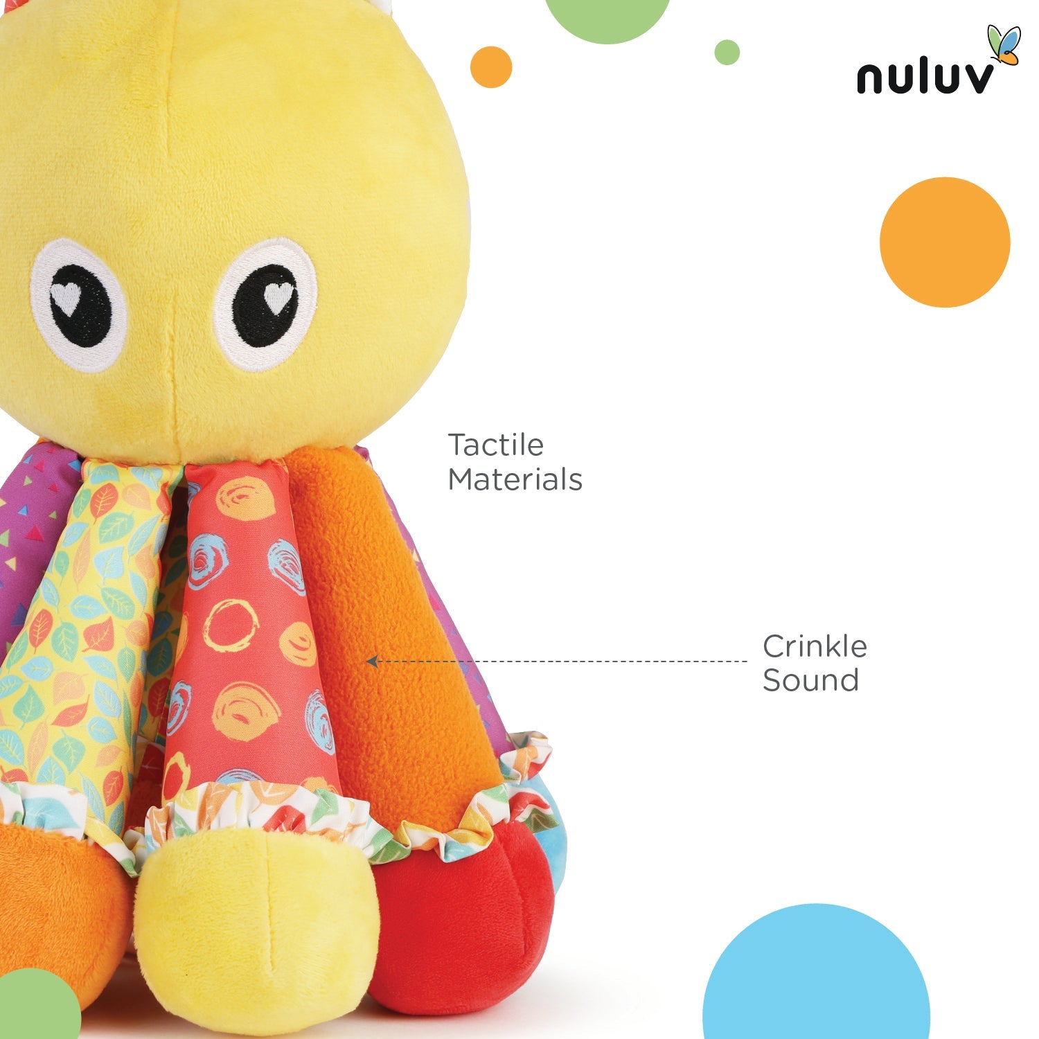 Hidden in it’s eight tentacles are a squeaker, a rattle and some crinkly textures, which would help the baby develop auditory, sensory and fine motor skills.