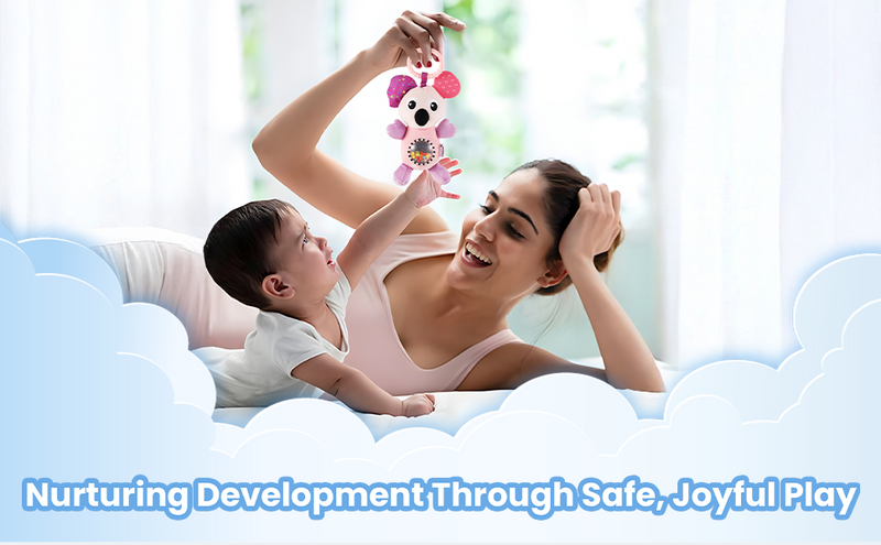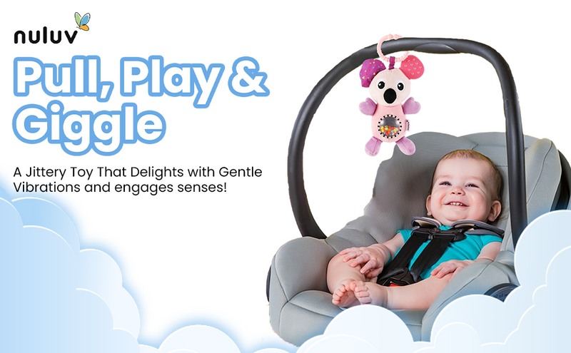 The Koala incorporates a jittery mechanism that creates gentle vibrations when pulled or activated, encouraging the baby to pull the toy for a playful experience.