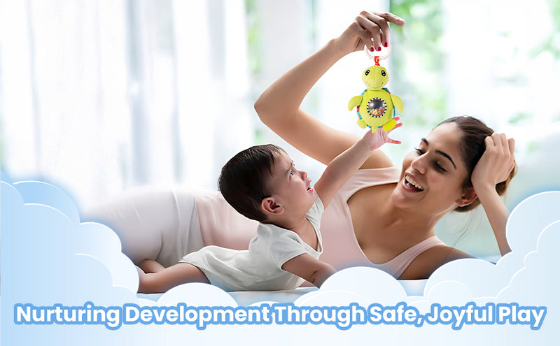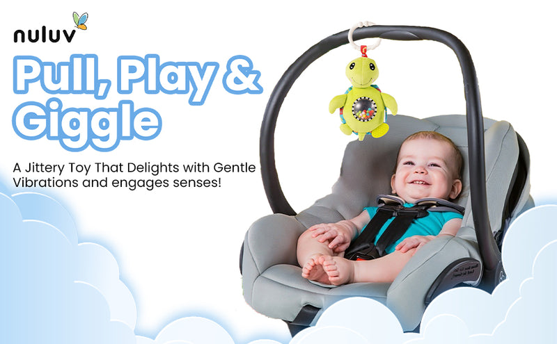 The Tortoise incorporates a jittery mechanism that creates gentle vibrations when pulled or activated, encouraging the baby to pull the toy for a playful experience.