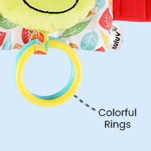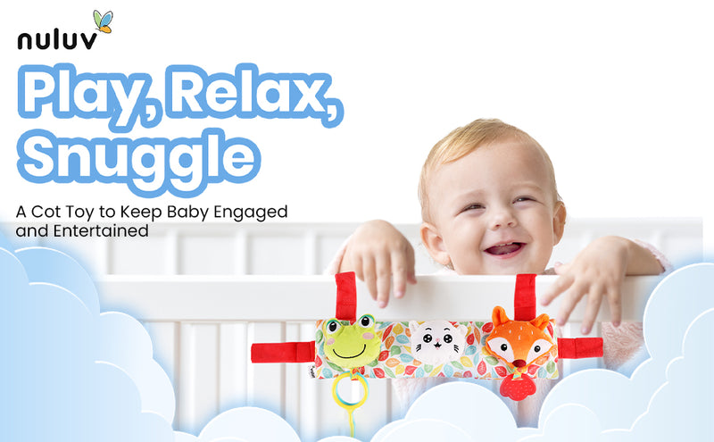 With three cute characters – a fox, a cat and a frog – attached to a multi-colored soft fabric, the toy adds vibrancy to any baby furniture! It comes with a teether that helps in the baby’s teething process. A delightful rattle encourages the baby to explore, grasp and shake.