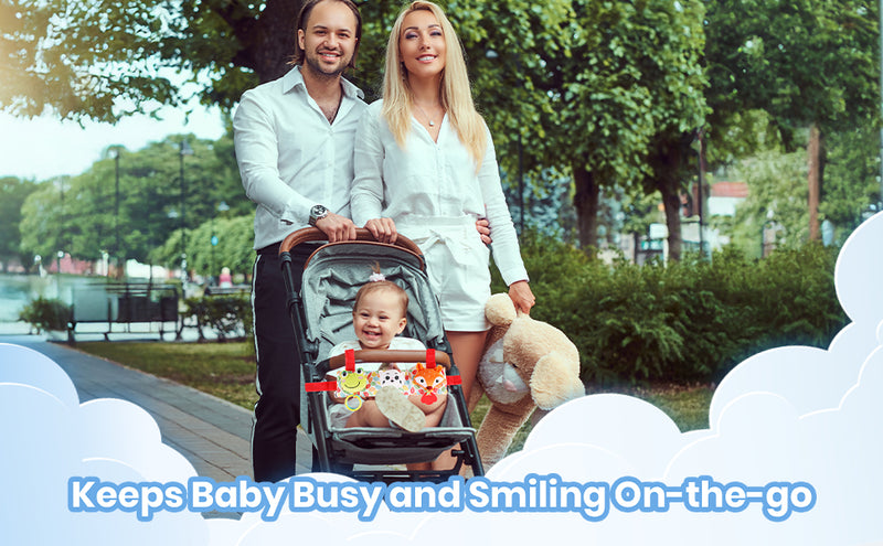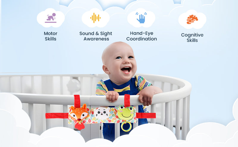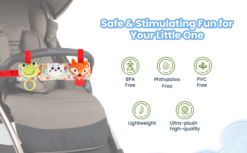 This multi-featured Stroller Cot Toy is sure to delight your baby and help in the baby’s cognitive development as well! It can be easily attached to a stroller, cot or other common baby furniture elements through velcro based straps provided.